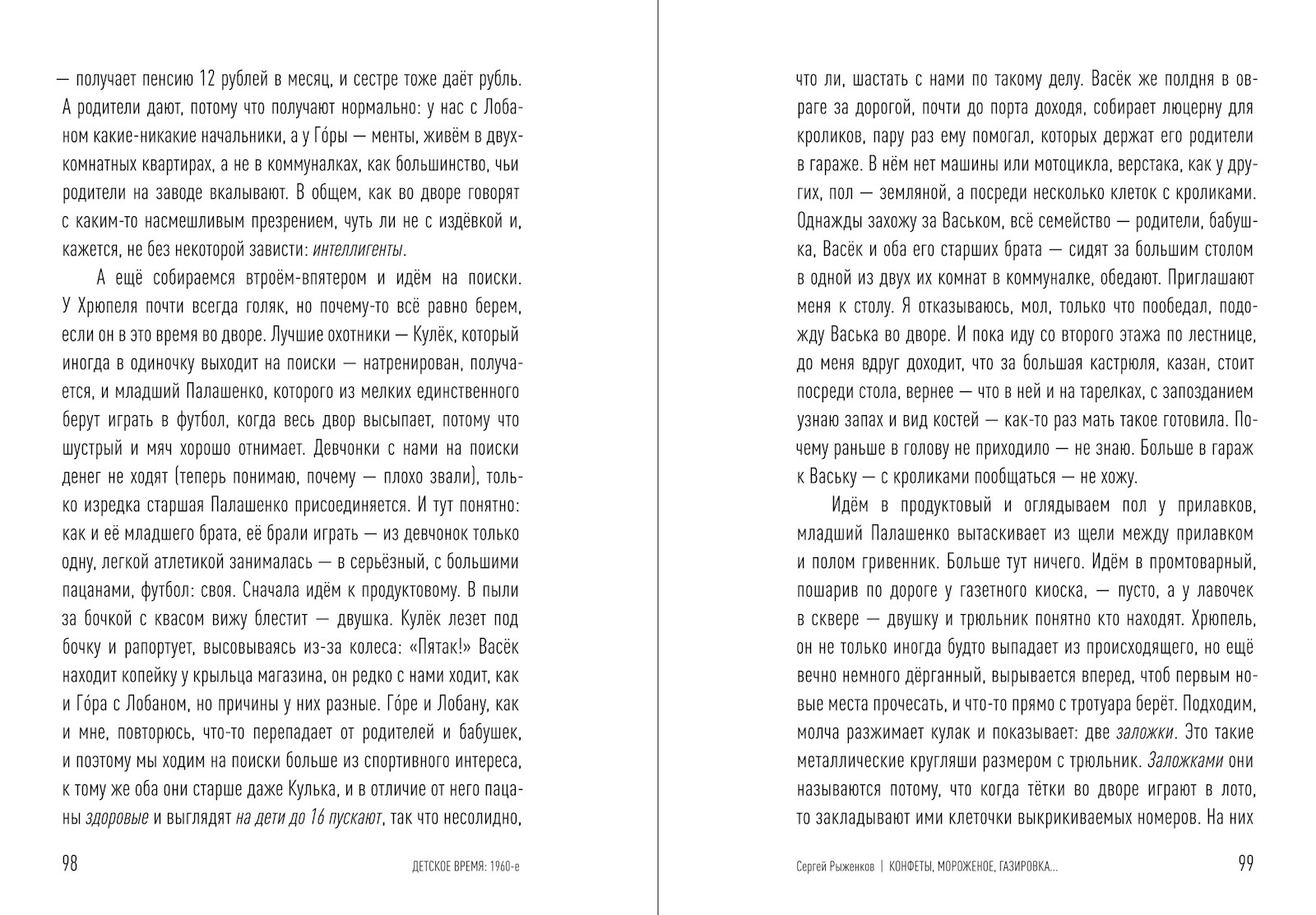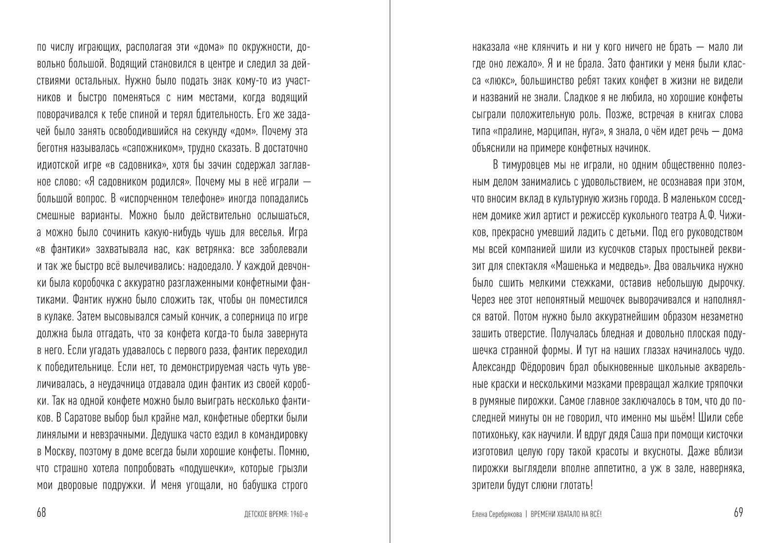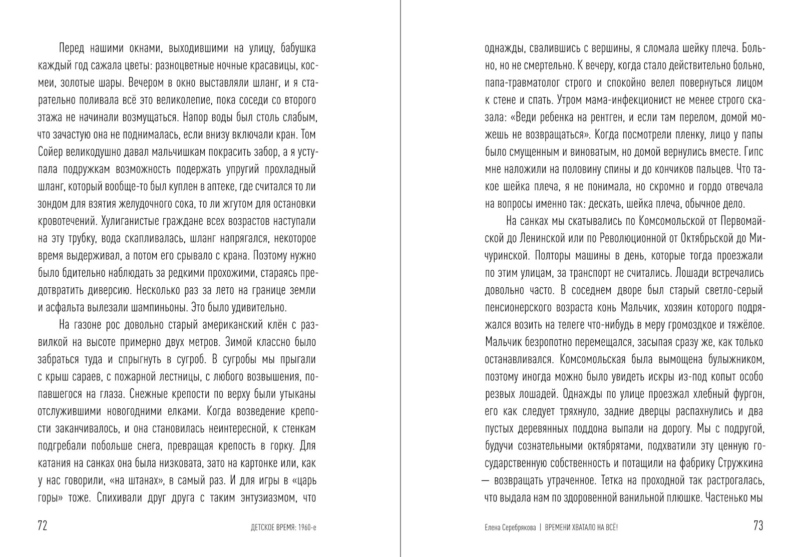 Первой книжке о саратовском детстве выпало быть про 1960‑е. Это время, когда Саратов активно прирастал послевоенной промышленностью. Среди жителей новых районов бытовало устойчивое выражение «поехать в город». Слева направо, если смотреть с Лысой горы на Волгу, — три текста. Мальчишки — один из Ленинского района, второй из Заводского — фланкируют текст девочки. Центральный во всех смыслах — о старом городе.