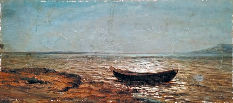 Г. П. Баракки. Лодка на берегу Волги. 1900-е (?). Картон, масло.