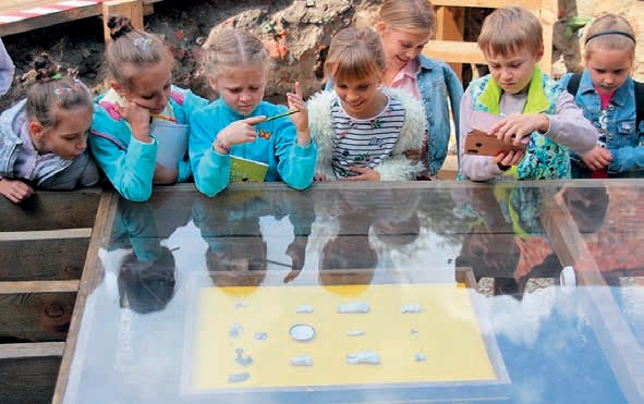 Витрина в раскопе. Открытие выставки «Мёд археологии».